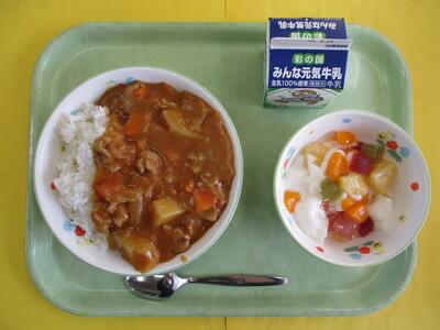 【今日のメニュー】牛乳 カレーライス フルーツ杏仁