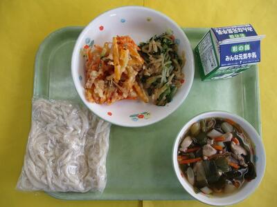 【今日のメニュー】牛乳 鶏ねぎゆず塩うどん 冬至のかき揚げ 大根と水菜のサラダ
