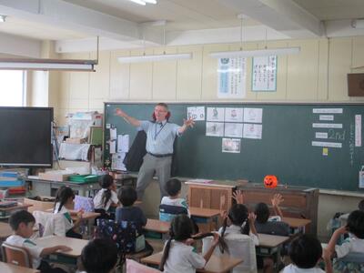 ALTの先生がドラキュラ(バンパイア)に扮して、1年生で一足早いハロウィンバージョンの外国語活動が行われました。モンスターカードを使ったじゃんけんゲームはとても盛り上がっていました。ぜひ1年生で「英語って楽しい!」と感じてほしいなと思います。