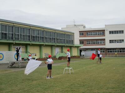 運動会まで、あと5日となりました。今日のさわやかタイムは、応援歌である「運動会の歌」を、紅白団長と旗手が前に立って練習しました。つい気合が入り過ぎて、早く歌ってしまう盤もありましたが、団長の手振りをよく見て、だんだんとリズムをあわせることができました。応援団の皆さんのリーダーシップと、大空に響く歌声を期待しています!