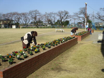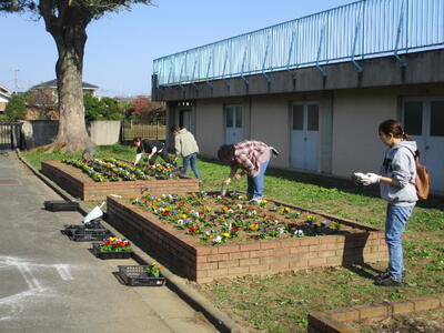 今日は強風の吹く中でしたが、PTAの役員さんとボランティアさんが、冬の花壇を彩るパンジーやビオラの設置を行ってくださいました。ありがとうございました。委員会活動で高学年児童が植え込みを行いますが、色とりどりの花々が4月下旬頃まで楽しめそうです。