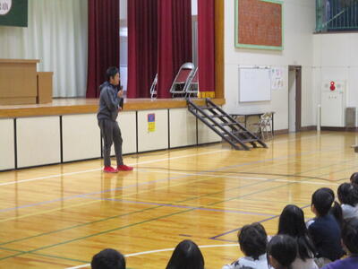 また、安全主任から登下校(走って帰る・通学路を守らないで近道などを通っている)についての全体指導を行いました。安全面はもちろん、走行している自動車、横切られている土地や家々の方などにも大きな迷惑となっています。家庭でもぜひお話いただけばと思います。