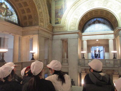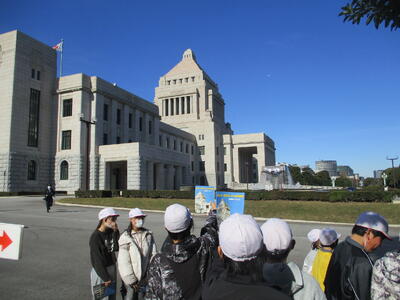 10(水)晴天のなか、6年生が東京方面へ社会科見学に出かけました。第一目的地の国会に着くまでは、ガイドさんから名所や建築物の説明、省庁や大使館の紹介などがあり、子どもたちは車窓から左右をきょろきょろ見ながら「見学」をしていました。いよいよ国会議事堂、パンフレットをめくりながら色々話をしている様子からも、子どもたちの関心の高さがうかがえました。ちょうど高市総理が答弁をしている時間帯で、緊張感を感じる国会見学でした。