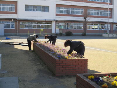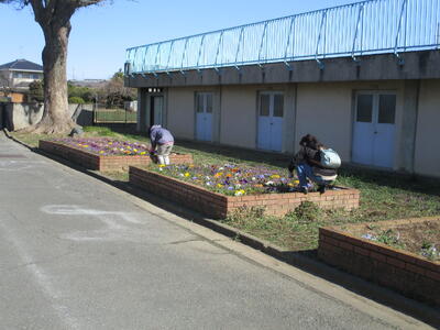 〇「PTAボランティアによる除草作業」 強風の中でしたが、役員さんとボランティアさんが集まって花壇の雑草抜きをしてくださいました。参加してくださった皆様の善意で綺麗な花壇が維持できています。本当にありがとうございます。美しい環境は子どもの豊かな心につながっていきます。今後もぜひ多くの皆様のご参加を願っております。