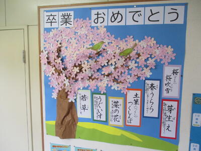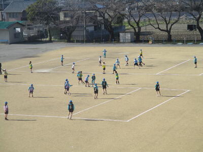 校長室前の掲示物が「春」バージョンになりました。桜の季節ももうすぐです。校庭を見ると4年生がサッカーの授業をしていました。