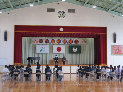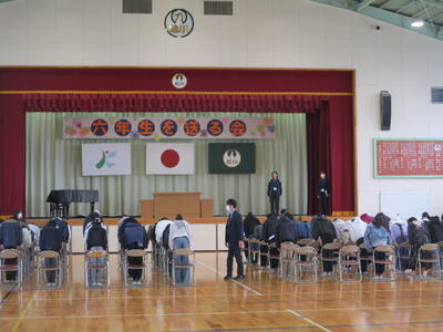 今日の2時間目、1回目の卒業式練習がありました。卒業式(卒業証書授与式)の意義を校長から説明した後、主幹教諭の指導のもと、基本的な動き方や礼儀の所作など練習しました。大切な節目の式に向けて、今後も練習に取り組んでいきます。