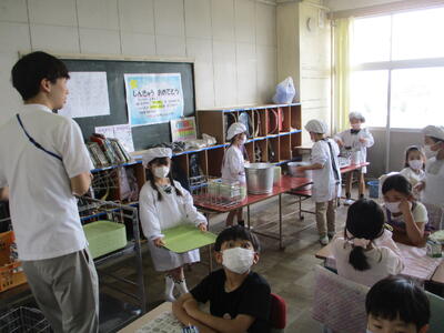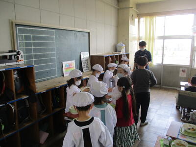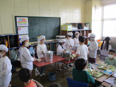 2年生の給食タイム(配膳のようす) 投稿: 松原小 校長 (17:16) 進級してすっかりお兄さん、お姉さんらしくなった2年生。今日は給食配膳の様子を見に行きました。テキパキとした準備に、ごはんや汁のよそい方や、待っている子たちの姿からも「成長した姿」を感じました。ぜひ1年生のよいお手本になってほしいなと思います。 Tweet -