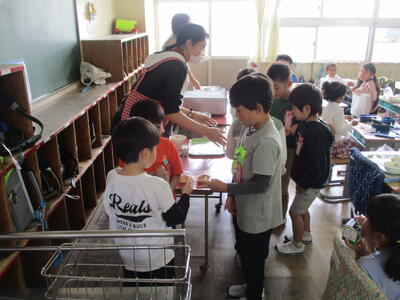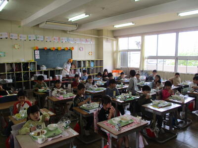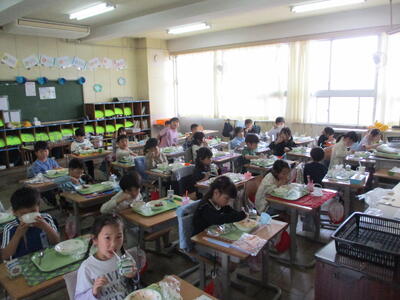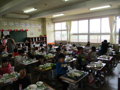 1年生の給食が始まりました! 投稿: 松原小 校長 (12:57) いよいよ1年生の給食が始まりました。ハンバーグやコーンポテトなど、人気のメニューがずらり。おいしそうに頬張っている様子があちこちで見られました。早速「おかわりジャンケン」が行われているクラスもありましたが、ぜひ、毎日の給食をおいしく食べてほしいなと思います。 Tweet -