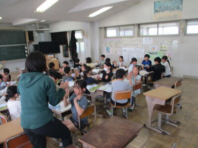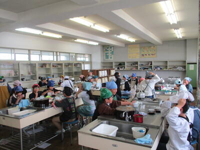 5年生が家庭科でお茶を煎れる練習をしていました。少し肌寒い日でしたので、緑茶とほうじ茶の温かさが体にしみました。とても協力できていたので今後の調理実習等も楽しみです。