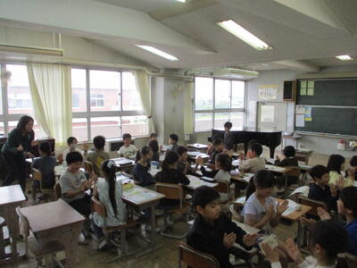 音楽室では3年生「夏も近づく~♪」の茶つみの歌に合わせて、楽しく手遊びをしていました。日本の古くからの童謡や手遊びもいいものですよね。