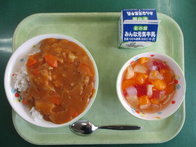 【今日のメニュー】牛乳 カレーライス フルーツポンチ