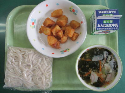 4月24日(金)の給食 投稿: 松原小 校長 (13:02) 【今日のメニュー】牛乳 地粉うどん わかめうどん汁 みそポテト みそポテトは秩父地方に古くから伝わる郷土料理です。じゃがいものうち小ぶりなものをいろりで焼き、味噌だれを塗って食べたのがみそポテトの始まりです。サクサク衣とホクホクしたじゃがいもが味噌だれと相性抜群の一品です。 Tweet -