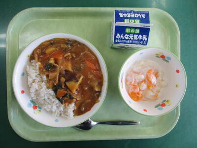 【今日のメニュー】牛乳 小江戸カレーライス フルーツヨーグルト