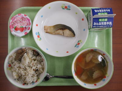 【今日のメニュー】牛乳 ごはん たらのゆず風味 かぼちゃの甘煮 みぞれ汁