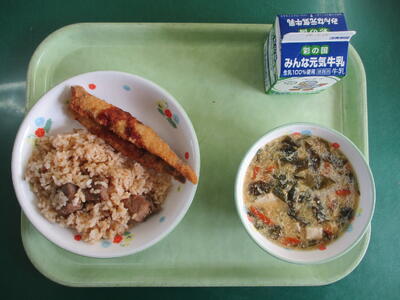 【今日のメニュー】牛乳 東松山やきとりご飯 ししゃもフライ かきたま汁