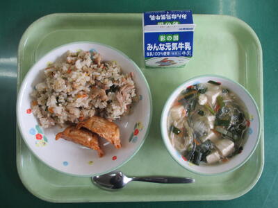 【今日のメニュー】牛乳 焼き肉チャーハン 揚げ餃子 春雨スープ